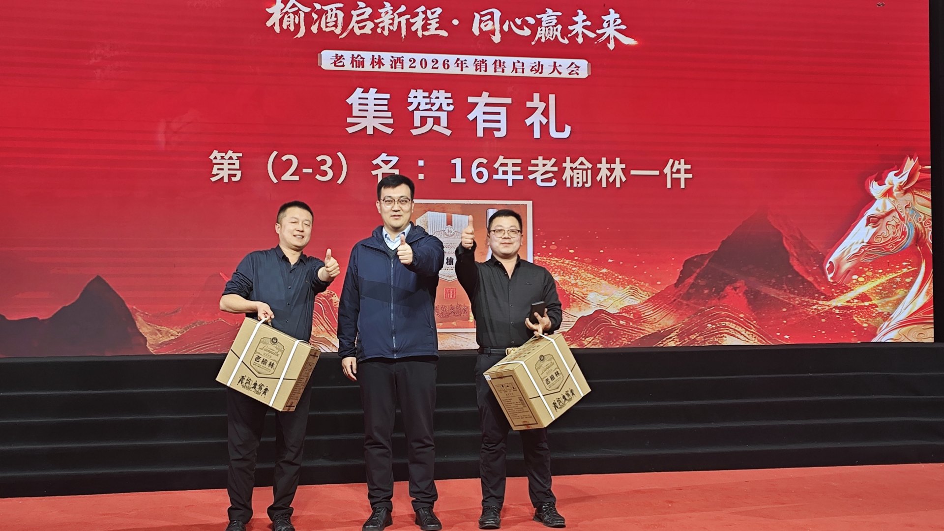 大会不仅战略发布亮点频出,还精心安排了丰富多彩的文艺表演与互动环节。两轮激动人心的大屏幕抽奖将现场气氛推向高潮,多款老榆林精品美酒作为奖品花落各家。此外,会议最后设置的“集赞有礼”活动吸引了众多嘉宾积极参与,最终六位集赞达人脱颖而出,收获了包括32年老榆林在内的丰厚大奖。